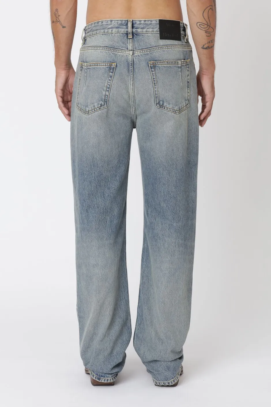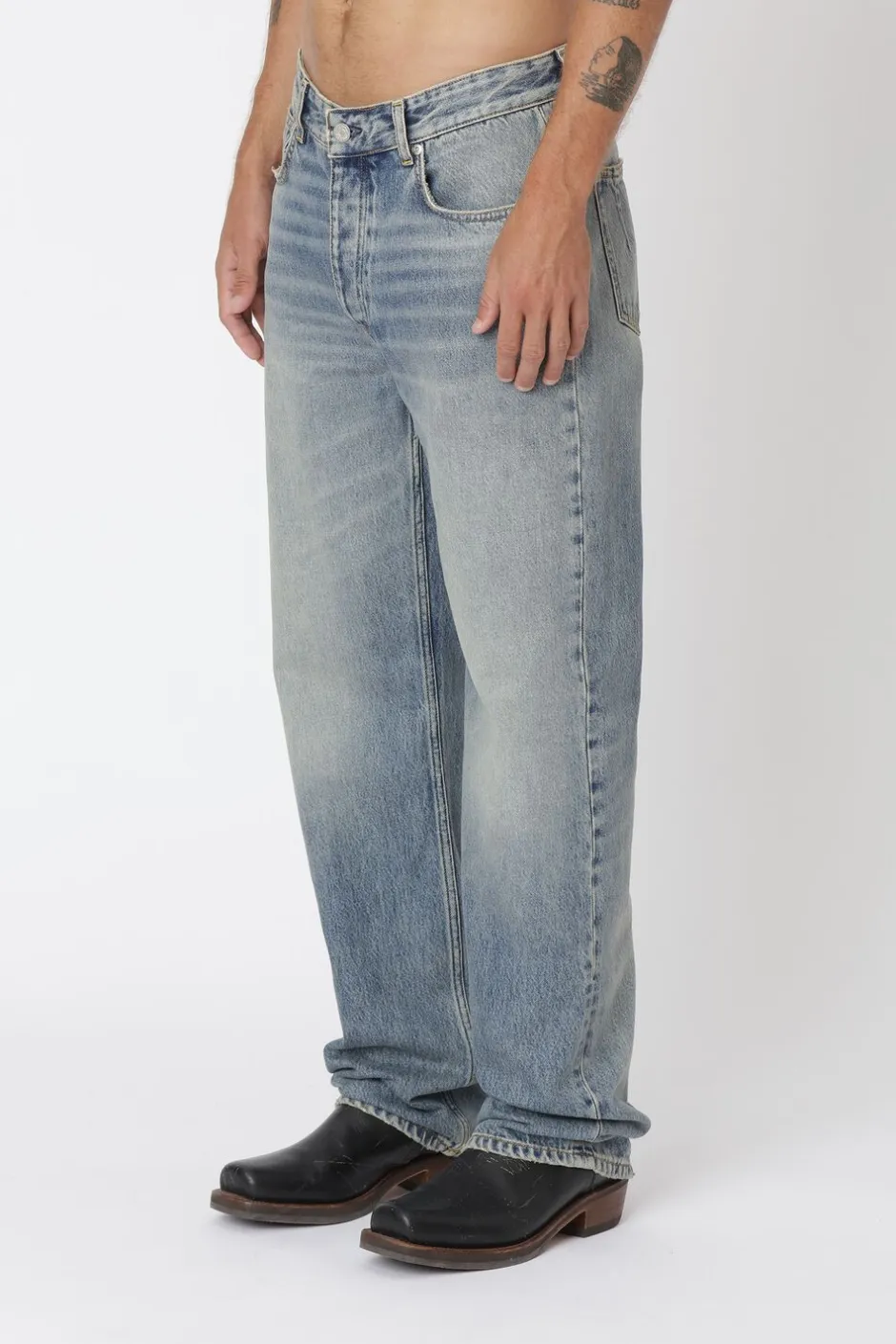 Steve er et par jeans i 90er-stil med løs pasform, mellemhøj talje, knaplukning og et afslappet, lige ben.