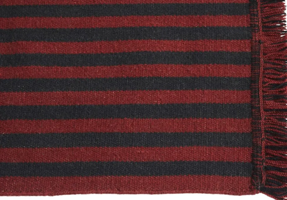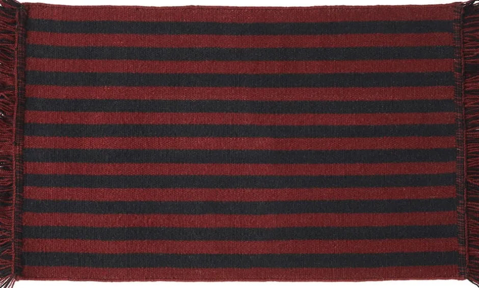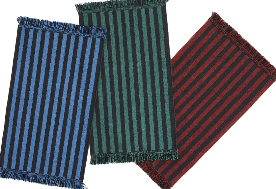 Stripes og Stripes tæppekollektionen består af dristige lodrette striber i kontrastfarver og har et rent, grafisk Design, der skaber illusionen om ekstra længde. Den er lavet af slidstærkt bomuld med frynsede ender og fås i forskellige længder og farvekombinationer