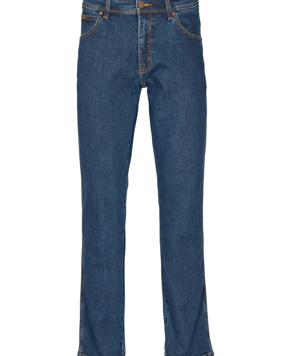 Jeans fra Wrangler i en blød og stretchy bomuldskvalitet. Buskerne er en klassisk 5-lomme model med knap- og lynlåslukning på fronten, syningsdetaljer samt ‘Authentic Straight Fit’. Et par klassiske jeans i en skøn kvalitet.