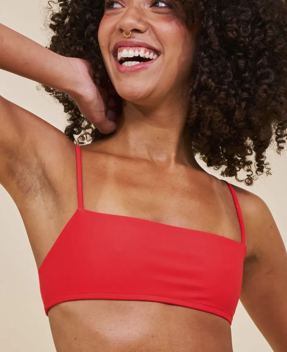 Hvis du elsker et klassisk, simpelt og tidløst look, så er Sanur bandeau bikini top din go-to bikini top. På trods af stropperne er tynde, sørger de for en fremragende støtte. Sanur toppen kan også bruges som sommertop med et par denim shorts eller en nederdel – klar til altid at hoppe i vandet. Sanur er syet med 2-lags stof af høj kvalitet, som føles fantastisk, er åndbart mod huden og samtidig støtter alle de rigtige steder. Produktet er skabt af ECONYL® regenereret nylon blandet med elastan.