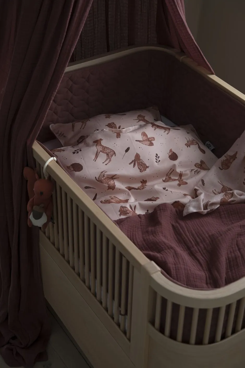 VIGTIGT! Støttebjælkerne skal afmonteres, før sengen anvendes i sin laveste stilling. Tremmesiderne skal afmonteres når barnet selv kan kravle ud af sengen. Mange forældre forsøger at trække tiden med tremmesiderne lidt, fordi afmonteringen også betyder mindre kontrol. Men af sikkerhedsmæssige årsager, skal de afmonteres, når barnet selv kan kravle ud.