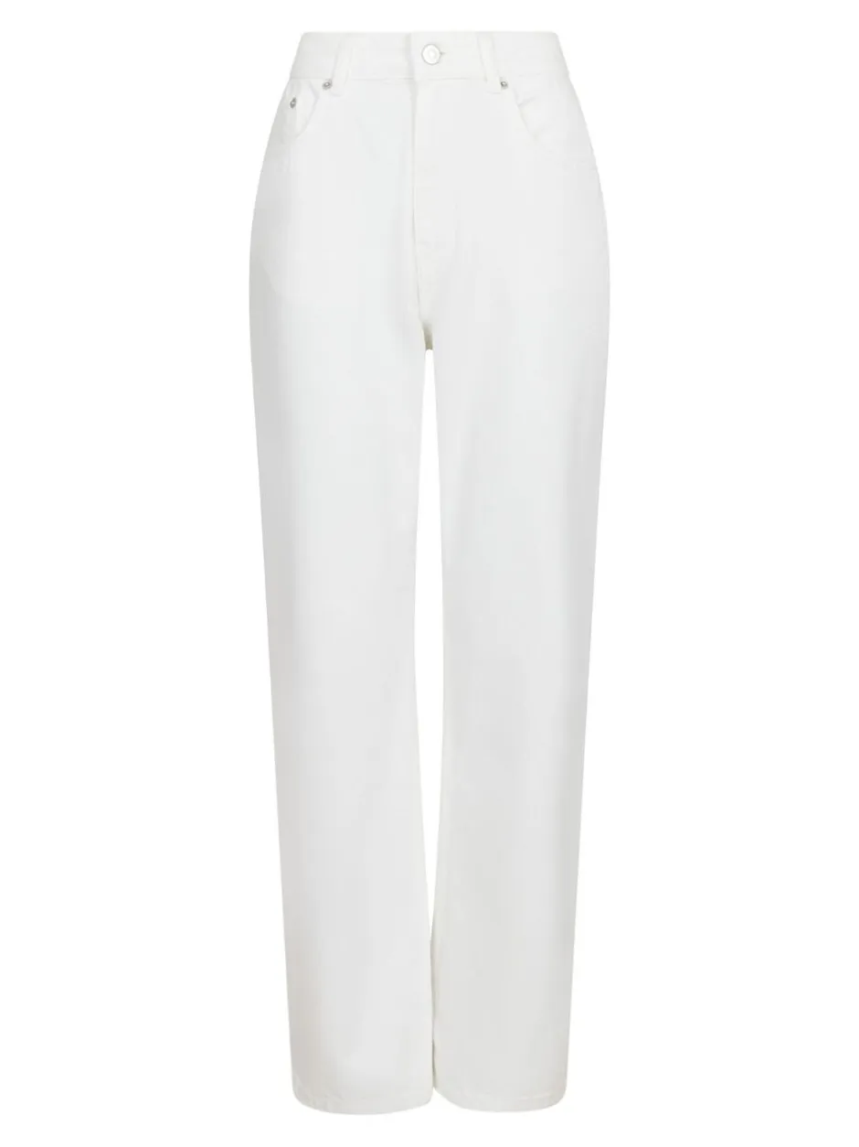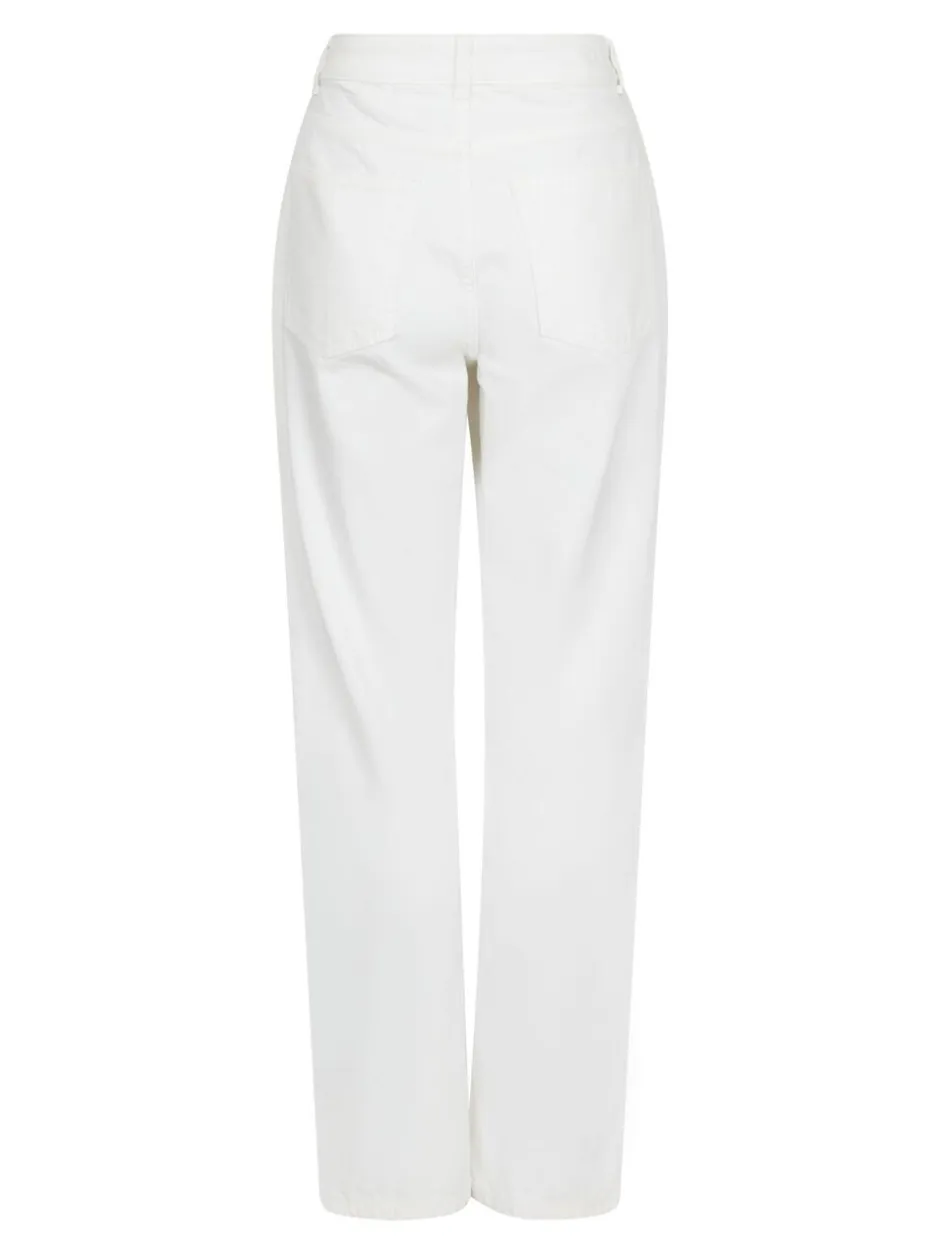 Jeans med mellem-høj talje og lige ben. De har bæltestropper i taljen, klassiske 5-pockets og lukkes med en knap samt skjult lynlås. Jeansene har et loose fit og er lavet i en ikke-strækbar bomuldskvalitet. Modellen er iført størrelse 36.