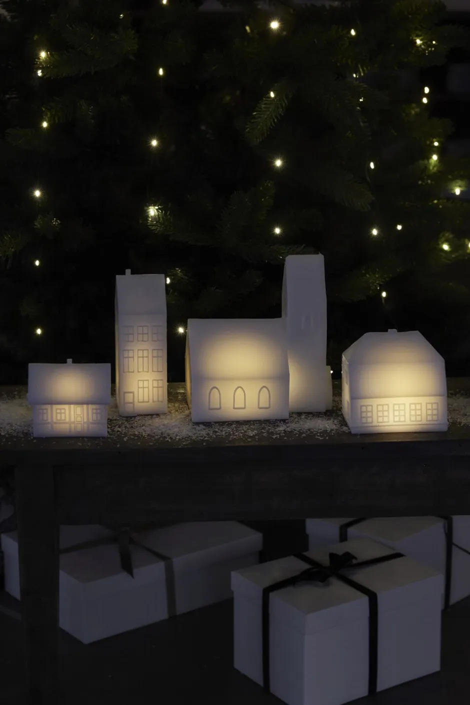 Voks hus med integreret LED lys der får huset til at funkle afdæmpet. København serien kan fint mikses i forskellige størrelser.