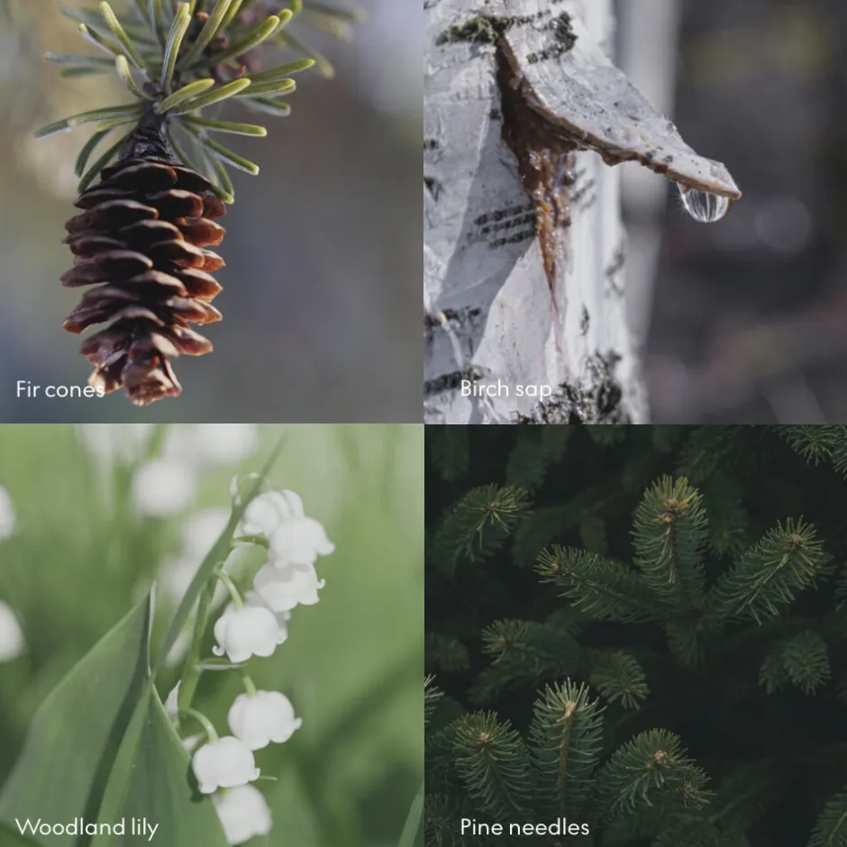 Duftnoter: Fyrrenåle, gran kogler, birkesaft, og Liljekonval.