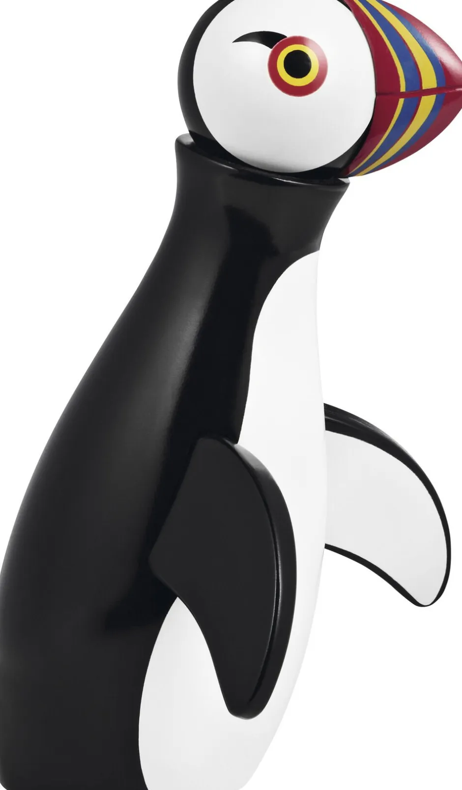 Familien Bojesens terrasse Bella Vista var fuld af blomster, kurvemøbler – og fugle. Kay Bojesen designede fuglene i 50’erne, men nåede dog aldrig at få dem sat i produktion. Søpapegøjen med det farvestrålende næb kom til verden 1954. Allerede dengang kom han flyvende fra start og landede lige hjertet på både børn og voksne. Smuk at skue og nem at elske, som han står der med sin let foroverbøjede krop og åbne vinger – altid klar til at give et kram.
