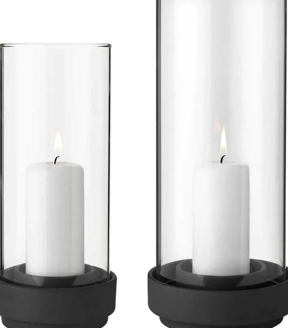 Med sin velkendte sans for enkelhed har Maria Berntsen designet disse stilrene hurricanes, der kan bruges året rundt som lyskilde i hjemmet, både udendørs og indendørs. Skulle hurricanen blive efterladt udendørs i regnvejr, sørger det smarte design for, at regnvandet løber ud af sig selv. Det sorte stentøj er vejrbestandigt og kan tåle at blive efterladt udendørs, også i frostvejr. Brug LED-lys, stearinlys eller paraffinlys som fyrfadslys eller bloklys. Lyset kan være diameter maks. Ø: 7 cm til den store Hurricane og maks. Ø: 6 cm til den lille.
