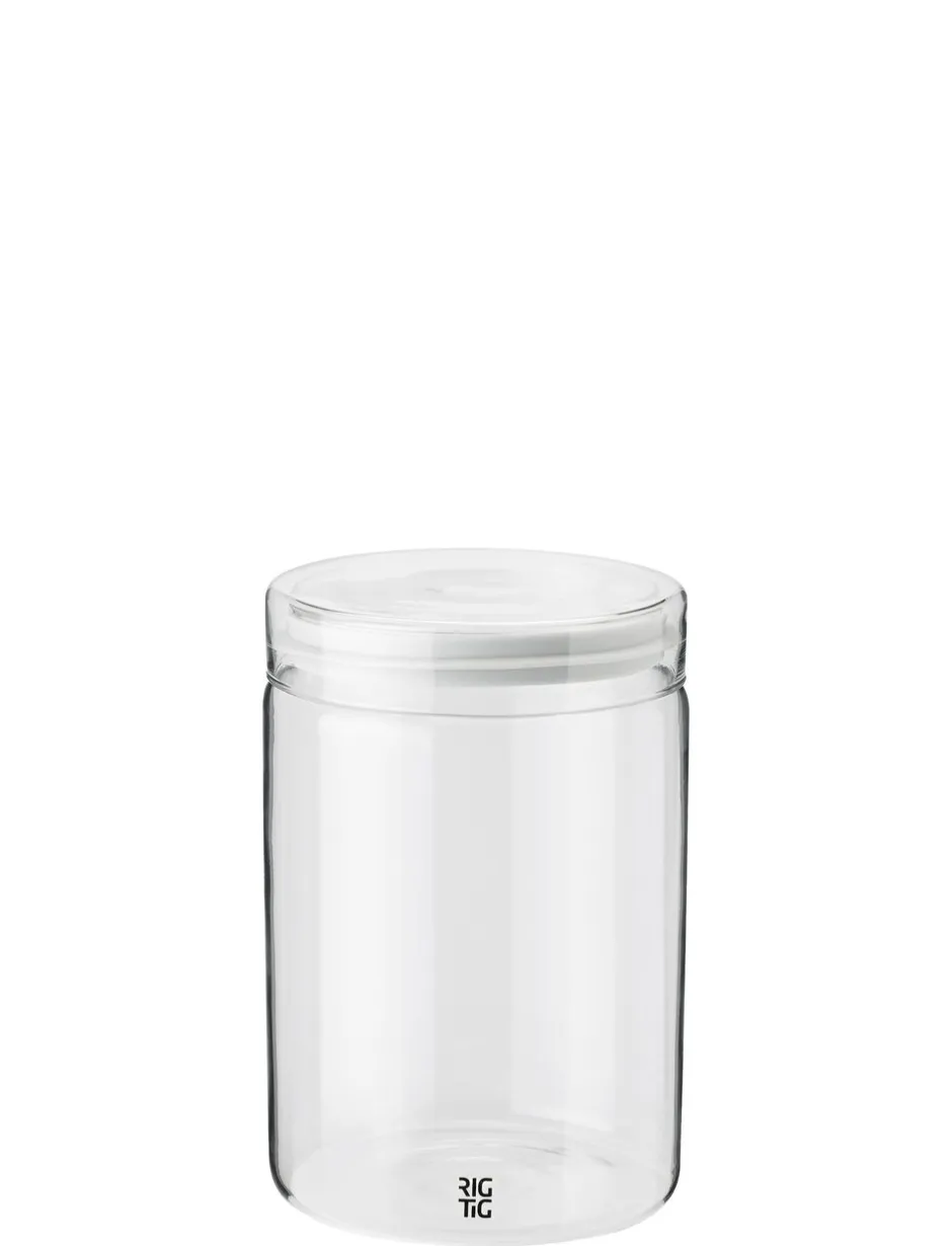 STORE-IT opbevaringsglassene er som skabt til opbevaring af fx gryn, pasta og korn i køkkenet. Det minimalistiske, cylindriske design optager ikke meget plads i skuffe, skab eller på hylden, og det gennemsigtige glas, gør det let og hurtigt at afkode indholdet af glasset. Silikoneringen sikrer, at låget slutter tæt, så indholdet ikke afgiver lugt eller optager smag fra andre madvarer. Glassene kan også bruges i køleskabet til opbevaring af marmelade, chutney eller madrester.