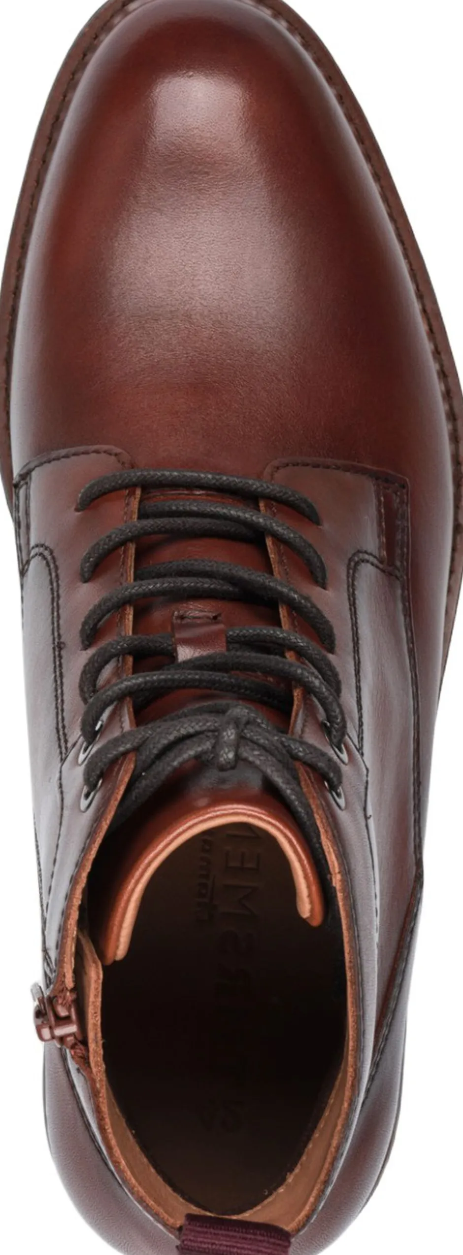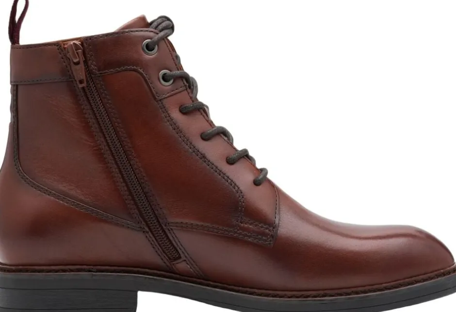 Ankel støvle i flot cognac farvet skind og med et 10 cm skaft højde. Der er indvendig lynlås og støvlen er skindfoeret. Ydersålen er i blød gummi.