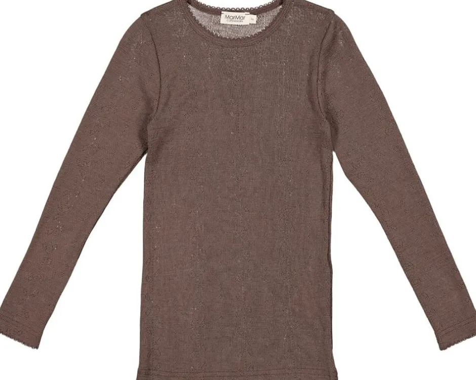 Langærmet t-shirt i en meget lækker uld kvalitet med et fint hul mønster.