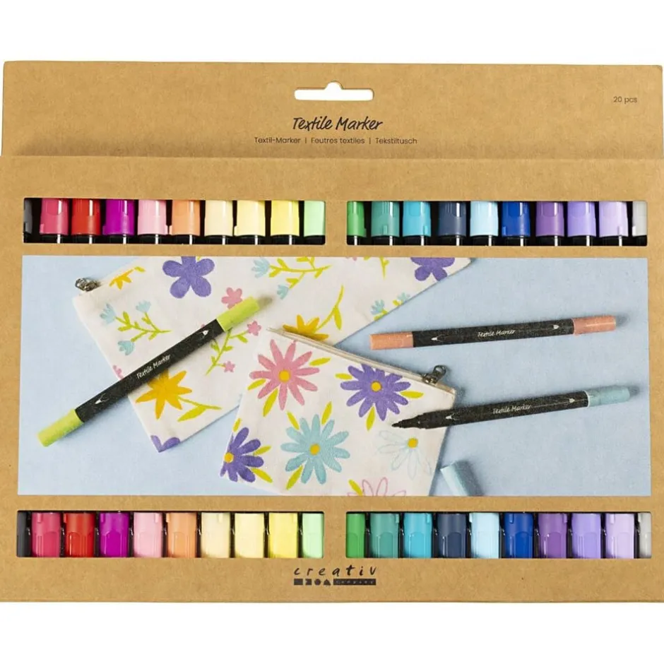 Tekstiltusch, streg 2,3+3,6 mm, suppleringsfarver, 20 stk.-Creativ Company Outlet