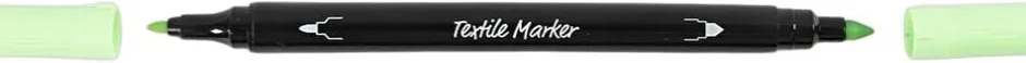 Semidækkende tekstiltuscher med to forskellige filtspidser i hver, som du kan bruge til at dekorere nye og gamle tekstiler med. Tekstiltuscher er gode til kreative genistreger. Med dem kan du bringe alverdens stof til live med unikke mønstre og søde tegninger – og du kan samtidig gå farve-amok! Tusserne er derfor et sikkert hit i alle aldre, både hos tegnglade voksne og kreative børn. Har du brug for en tynd streg til at tegne og skrive med – eller en tyk streg til at farvelægge med? Med vores tekstil markers får du begge muligheder. Så skal det være nemt at dekorere på tekstil og stof, er denne populære tusch et rigtig godt valg.. Ryst tuschen godt før brug, og læg plast eller pap ind i fx t-shirts og muleposer, så farven ikke smitter af på bagsiden. Når farven er tør, kan du strygefiksere med bagepapir over og under tekstilemnet. Efter strygefiksering holder farverne sig flotte i vask op til 40 grader C. Bemærk, at tuschen er perfekt til lyse tekstiler af bomuld m.m.