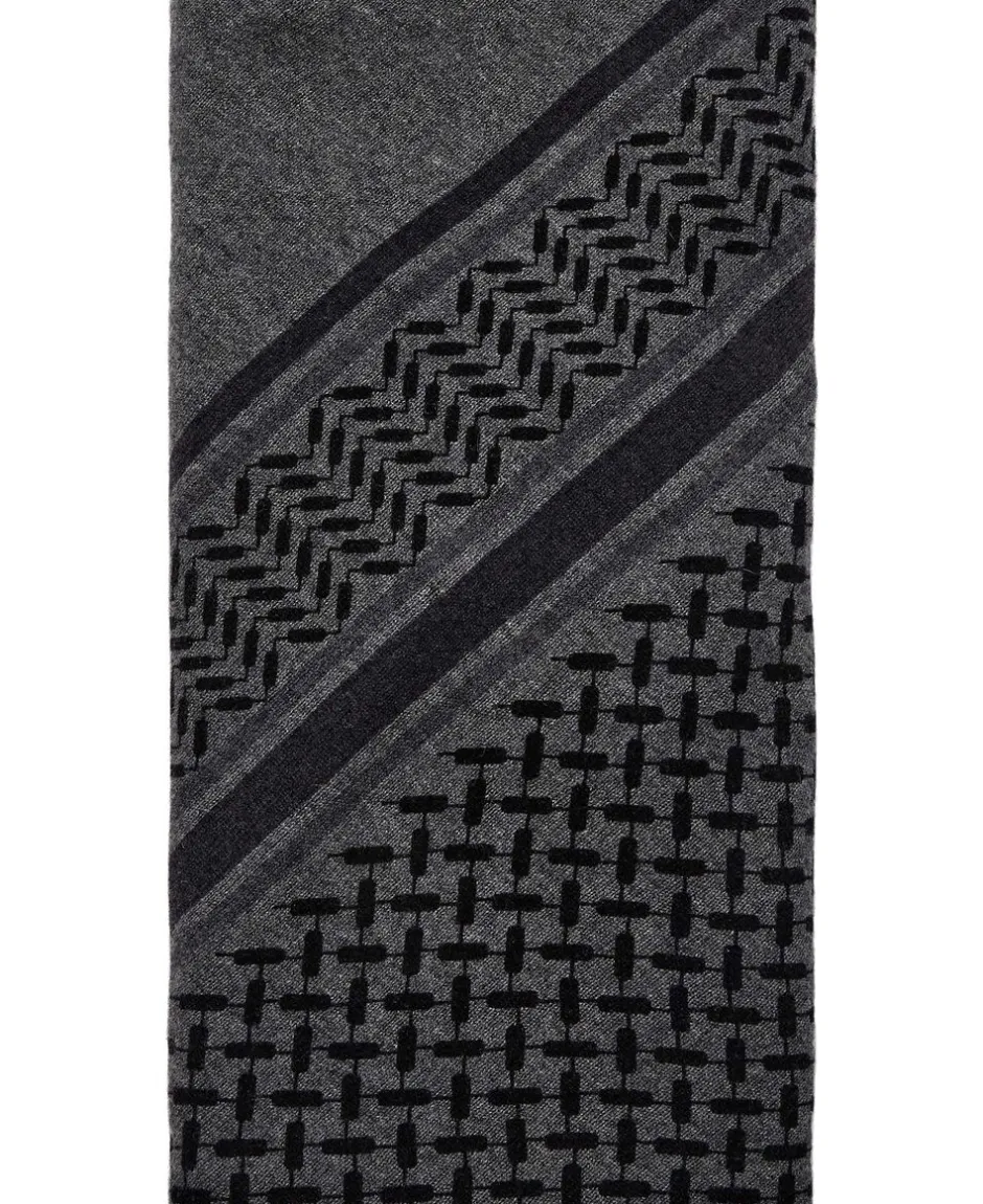 Et stort, luksuriøst blødt, trekantet cashmere tørklæde med et klassisk sort Kufiya-print.