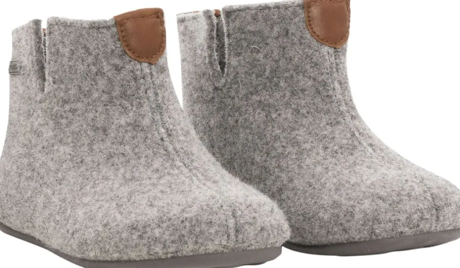 Shepherd Uddebo. Et par varme og behagelige barnhjemmesko i uld. Hjemmeskoene er udformet i en ankelhøj model med en slids i siderne. De har en synlig syning foran og detaljer i læder på skaftet. Indersål i blød uld. Ydersål i gummi.