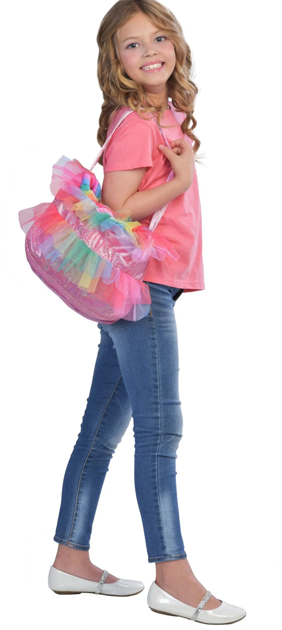 Magic Flip ? hvor fantasien udfolder sig! En eventyrlig regnbuehåndtaske forvandles magisk til en vidunderlig og eventyrlig enhjørningekjole Dette sæt inkluderer desuden også et enhjørningehårbånd Størrelse 7-8 år