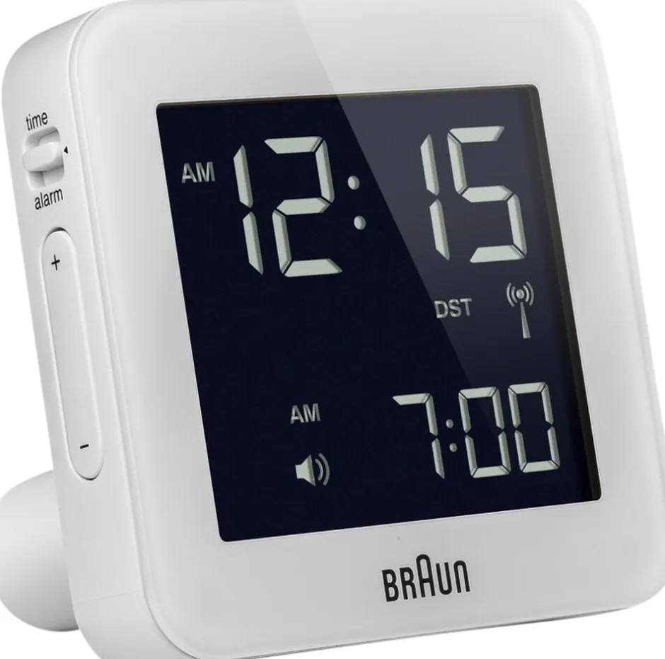 Dette rejsevækkeur har vundet ikke mindre end to priser for sit unikke design. Her får du alt, hvad du skal bruge for at holde styr på tiden, når du rejser ud i verden. LCD display. Snooze-funktion. Quick set-funktion.