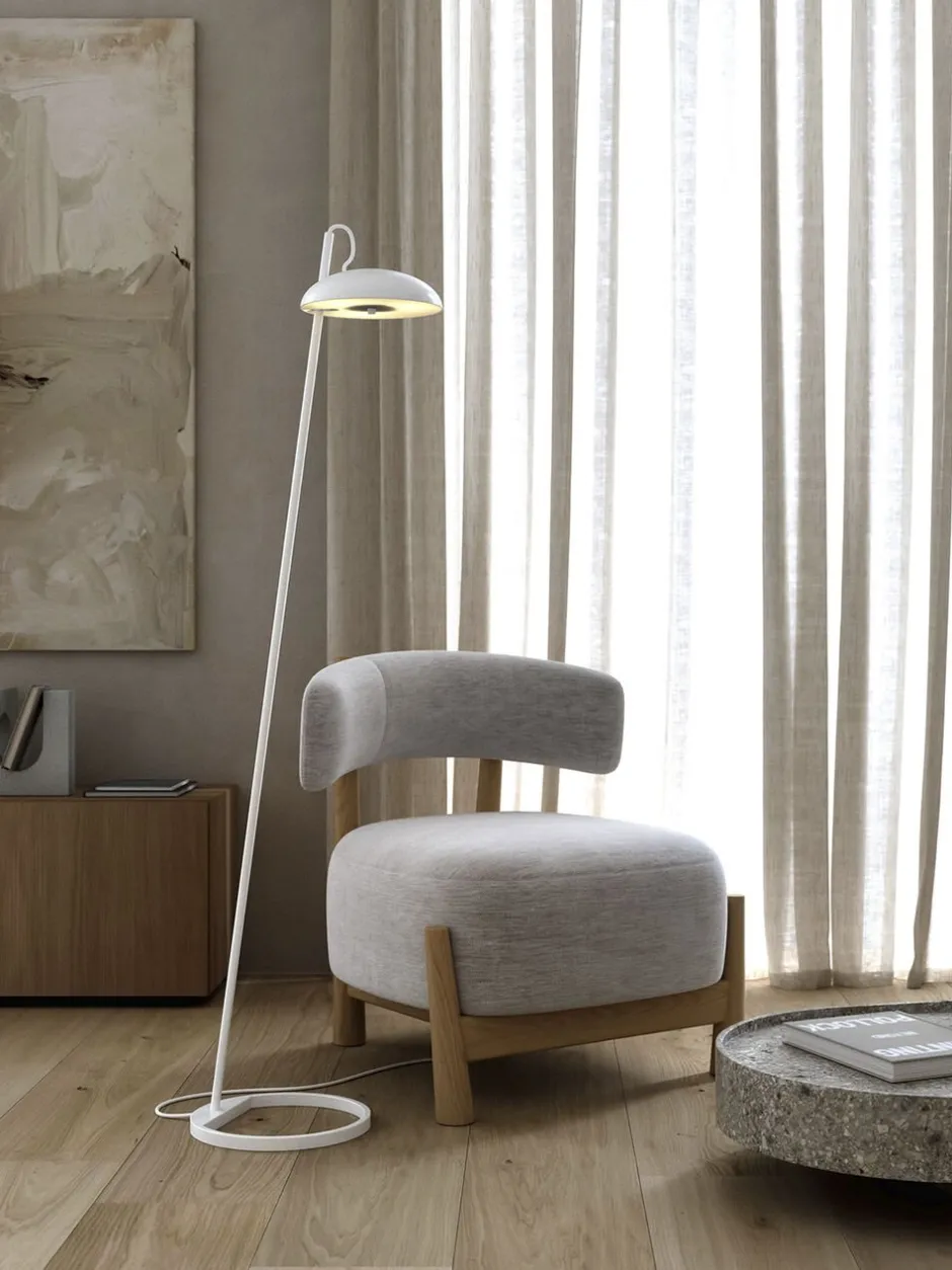 Versale-serien fra Anker Studio er indbegrebet af skandinavisk minimalisme med et skarpt og helt rent design. En perfekt rund skærm, der giver et ensartet lysfelt kun brudt af det perforerende ophæng. Gulvlampens behagelige blændfri lys skaber den perfekte stemning, uanset hvor du placerer den.
