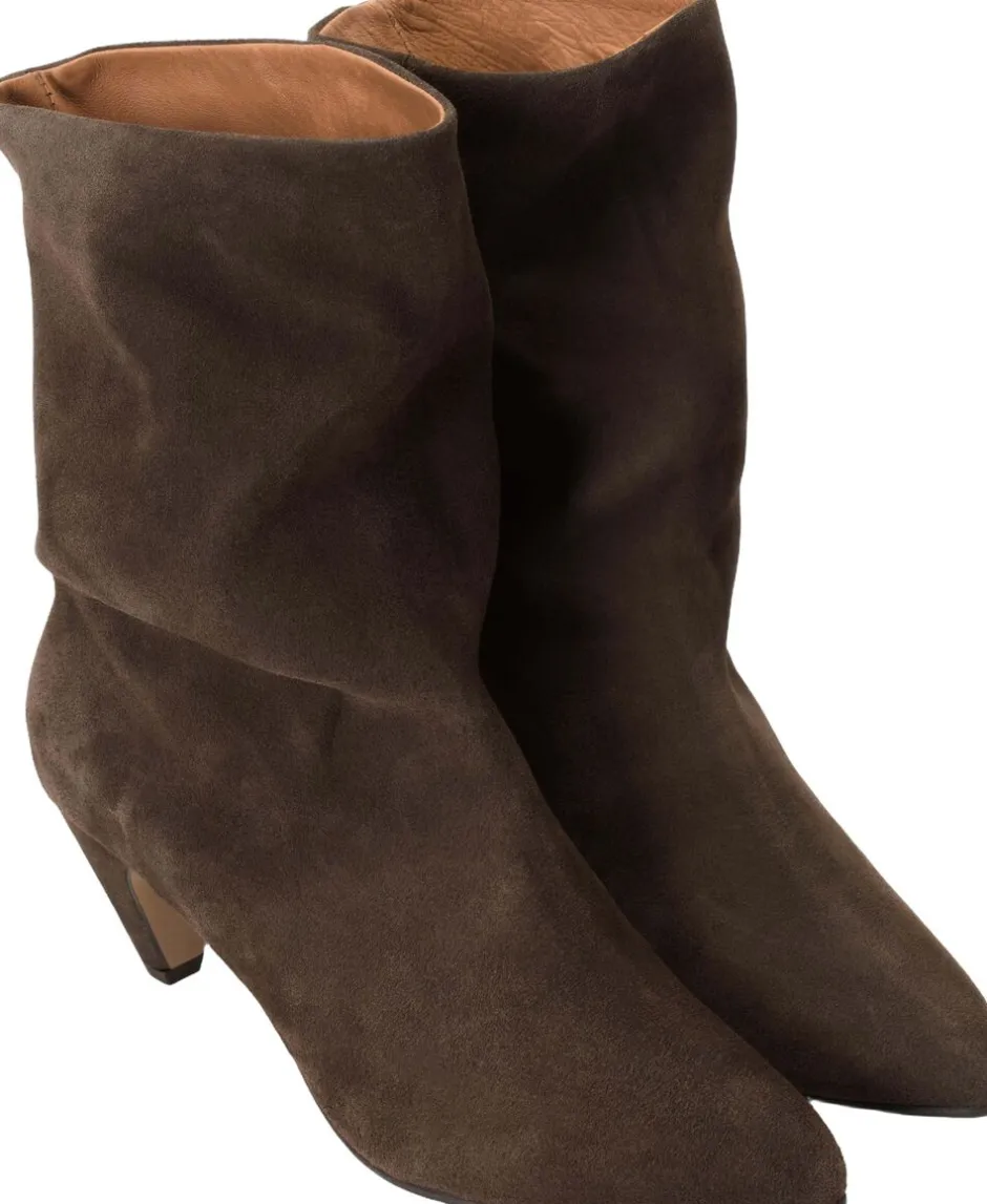 Støvlet med fald ned effekt i skaftet og 50 mm stilet hæl. 100% LWG certified leather. Made with chrome-free lining
