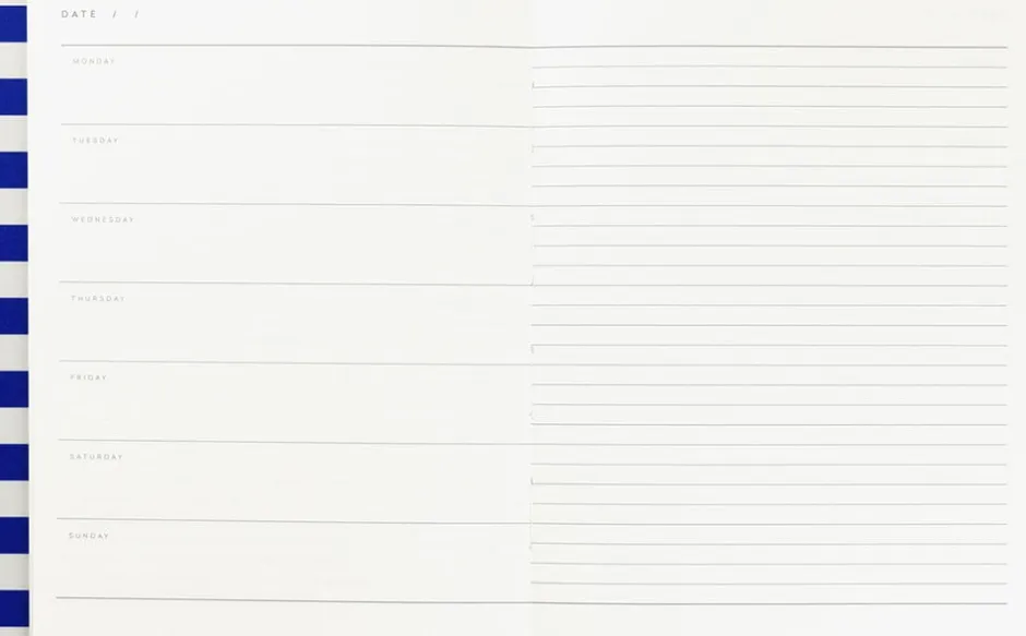 Weekly Planner med syet ryg, Blå stribe-Notem Online