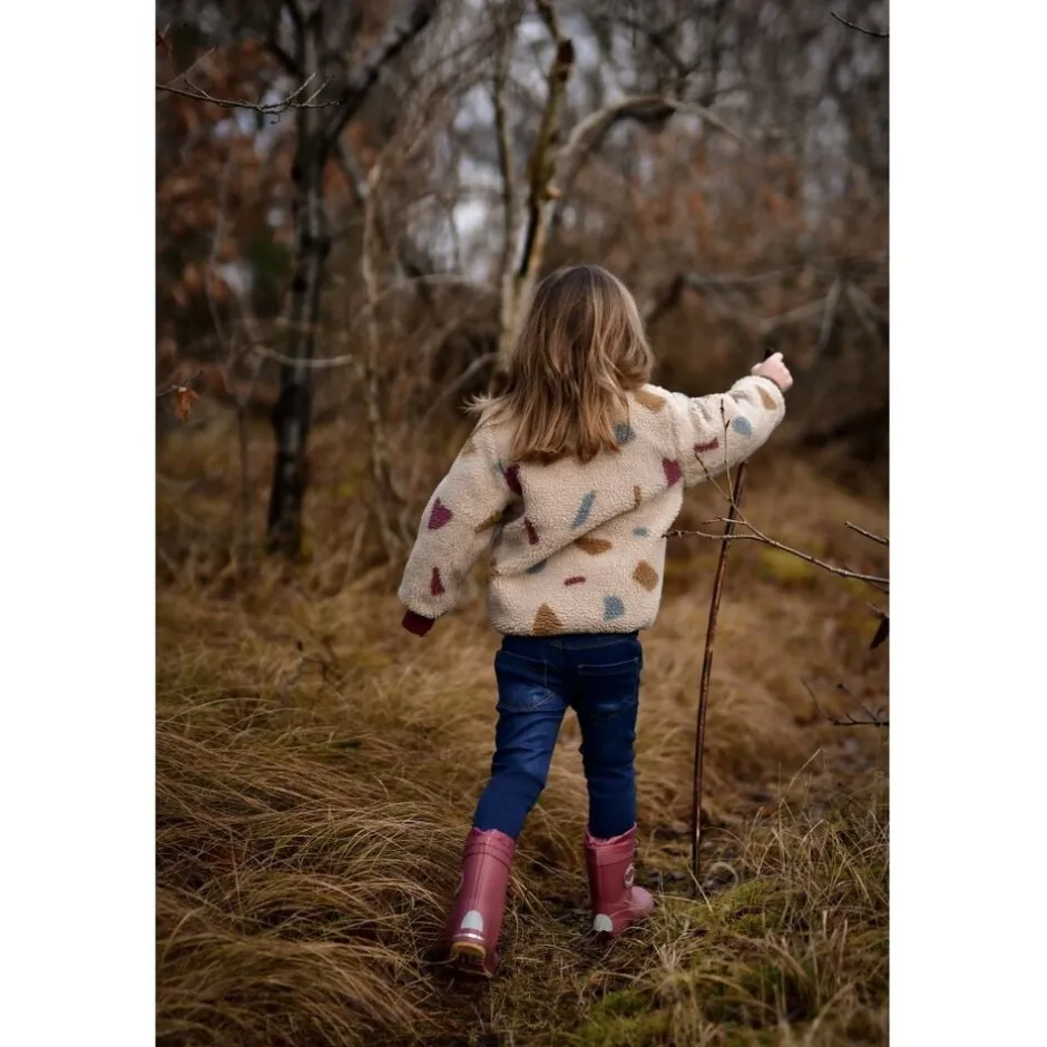 Disse ensfarvede mikk-line vintergummistøvler med lun foring er lavet af naturlig gummi, og de er fri for ftalater. Gummistøvlerne er vandtætte, varme og praktiske til børn, der elsker at hoppe i vandpytter eller lege i vådt græs, sand eller sne. Disse gummistøvler fås i størrelse 19-38 i forskellige farver til både drenge og piger. GENNEMTÆNKT DESIGN – Udstyret med snørebånd til at justere toppen af gummistøvlerne og minimere risikoen for at få vand eller sne ind i gummistøvlerne. – Varm og isolerende foring lavet af 30% uld, som også kan absorbere meget fugt uden at støvlerne føles fugtige indvendig. – Bløde og aftagelige indlægssåler, der giver dig mulighed for at finde den rigtige skostørrelse til dit barn. Hvis der kommer vand ind i gummistøvlerne, kan du fjerne indlægssålerne og hænge dem til tørre. – 3M-reflekser gør barnet mere synligt i mørket selv på lang afstand. – Det er sikkert at gå på glatte overflader, da gummistøvlerne har skridsikre ydersåler med riller til at lede vandet væk. – Naturgummi. – Uden ftalater, tungmetaller, klorparaffiner og PAH’er. STØRRELSESGUIDE (Længde på indlægssål målt i centimeter) 19 12,5 20 13,1 21 13,8 22 14,5 23 15,1 24 15,8 25 16,5 26 17,1 27 17,8 28 18,4 29 19,1 30 19,8 31 20,4 32 21,1 33 21,7 34 22,4 35 23,1 36 23,8 37 24,5 38 25,1 PLEJEVEJLEDNING – Brug en vandbaseret imprægneringsspray (helst uden PFAS) til regelmæssigt at imprægnere gummistøvlerne. Dette hjælper med at fugte gummistøvlerne og forhindre dem i at revne. Undgå at sprøjte på ydersålen, da den kan blive glat. – Rengør gummistøvlerne ofte. Brug en blød klud med vand og en skånsom sæbe . – Lad gummistøvlerne tørre ved stuetemperatur. Hvis der er vand indeni støvlerne/gummistøvlerne, fyld dem med avispapir der kan suge vandet. – Undgå at udsætte gummistøvlerne for sollys og ekstremt høje eller lave temperaturer i længere perioder. – Opbevar gummistøvlerne oprejst et tørt, mørkt og køligt sted.